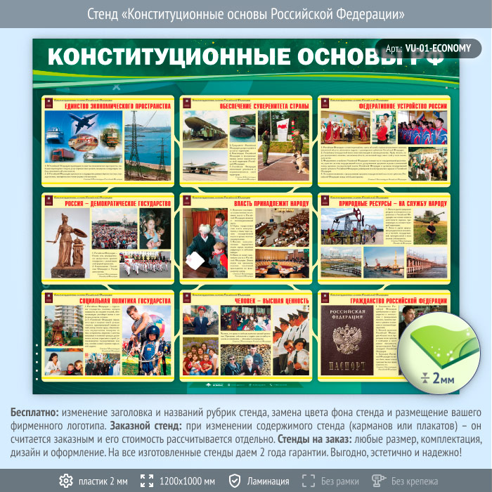 Стенд «Конституционные основы Российской Федерации» (VU-01-ECONOMY) в Новом Уренгое купить