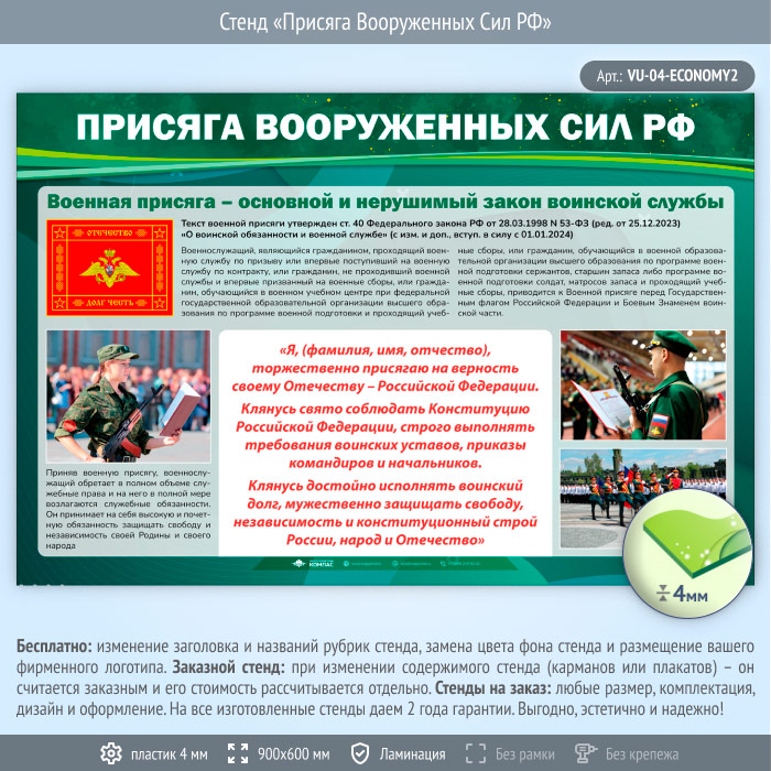 Стенд «Присяга Вооруженных Сил РФ» (VU-04-ECONOMY2) в Новом Уренгое купить