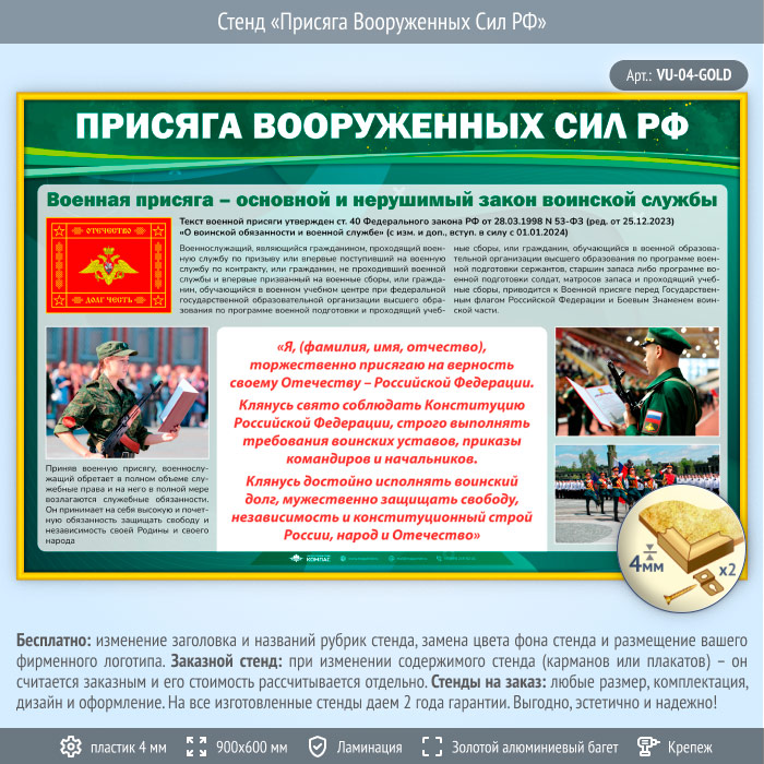 Стенд «Присяга Вооруженных Сил РФ» (VU-04-GOLD) в Новом Уренгое купить