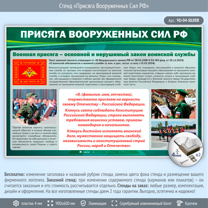 Стенд «Присяга Вооруженных Сил РФ» (VU-04-SILVER) в Новом Уренгое купить