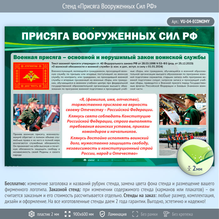 Стенд «Присяга Вооруженных Сил РФ» (VU-04-ECONOMY) в Новом Уренгое купить
