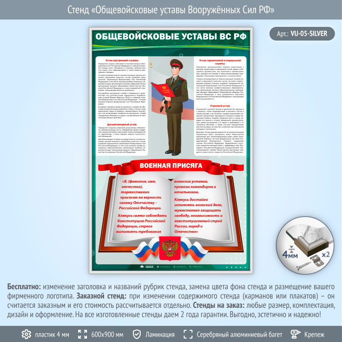 Стенд «Общевойсковые уставы Вооружённых Сил РФ» (VU-05-SILVER) в Новом Уренгое купить