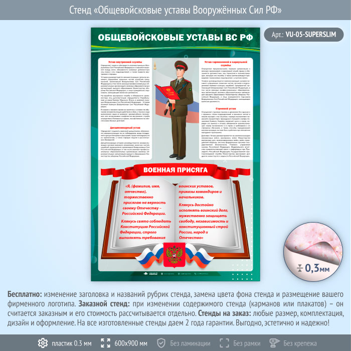 Стенд «Общевойсковые уставы Вооружённых Сил РФ» (VU-05-SUPERSLIM) в Новом Уренгое купить