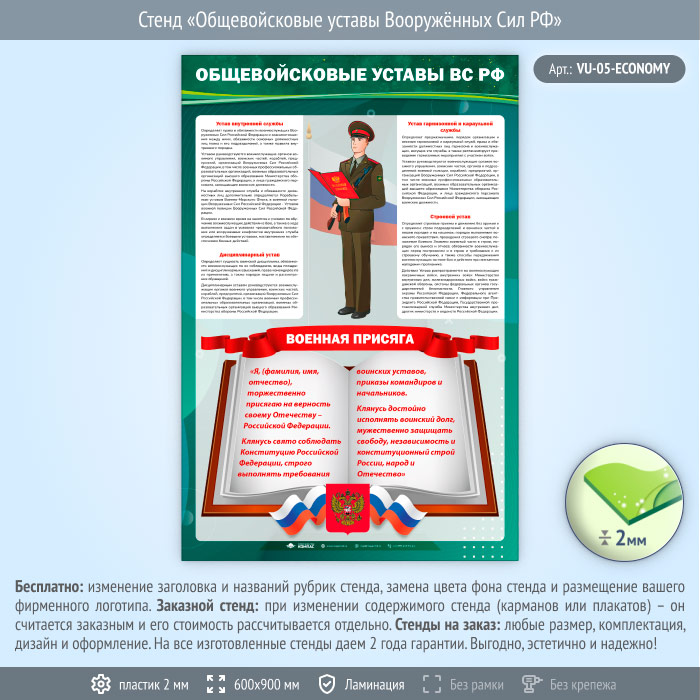 Стенд «Общевойсковые уставы Вооружённых Сил РФ» (VU-05-ECONOMY) в Новом Уренгое купить