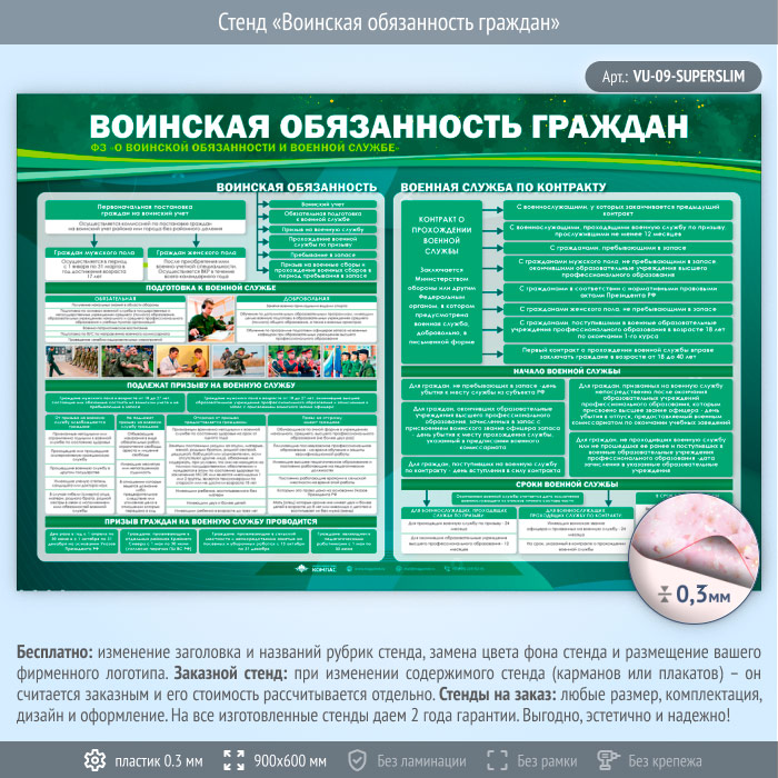Стенд «Воинская обязанность граждан» (VU-09-SUPERSLIM) в Новом Уренгое купить