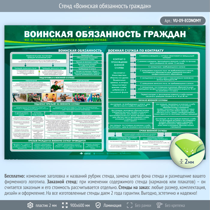 Стенд «Воинская обязанность граждан» (VU-09-ECONOMY) в Новом Уренгое купить
