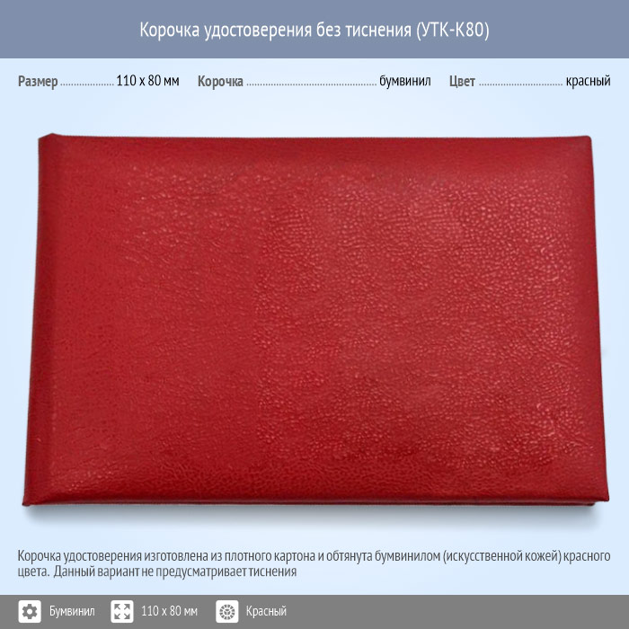 Бланк удостоверения без тиснения, красная, 110 x 80 мм (УТК-К80) в Новом Уренгое купить