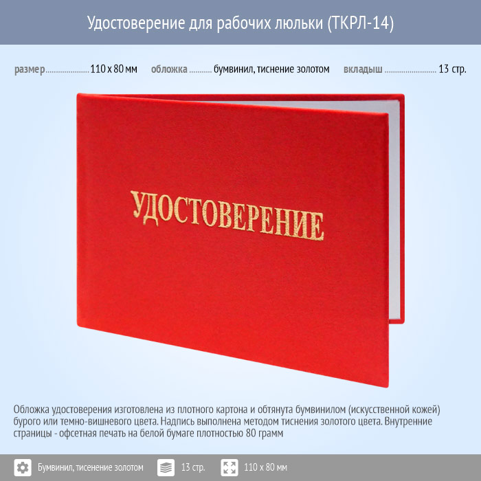 Бланк удостоверения для рабочих люльки (ТКРЛ-14) в Новом Уренгое купить