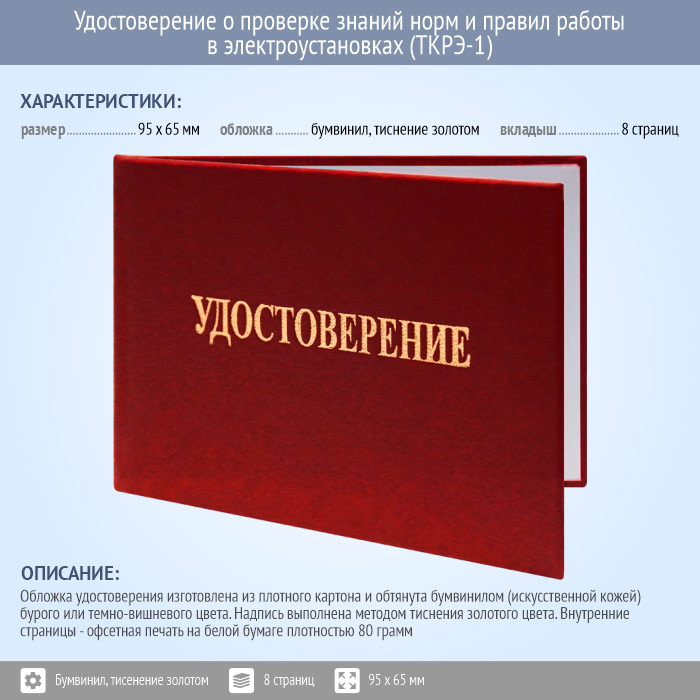 Бланк удостоверения о проверке знаний норм и правил работы в электроустановках (новый образец 2021 года) (ТКРЭ-1) в Новом Уренгое купить