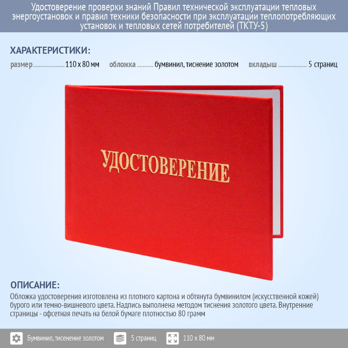 Бланк удостоверения проверки знаний Правил технической эксплуатации тепловых энергоустановок и правил техники безопасности при эксплуатации теплопотребляющих установок и тепловых сетей потребителей (ТКТУ-5) в Новом Уренгое купить