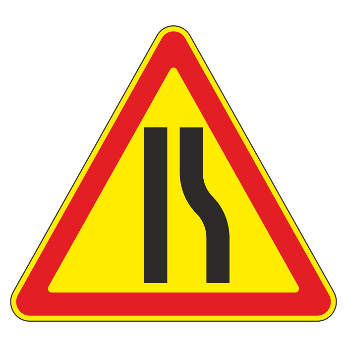 Дорожный знак 1.20.2 «Сужение дороги» (временный) (металл 0,8 мм, II типоразмер: сторона 900 мм, С/О пленка: тип А инженерная) в Новом Уренгое купить