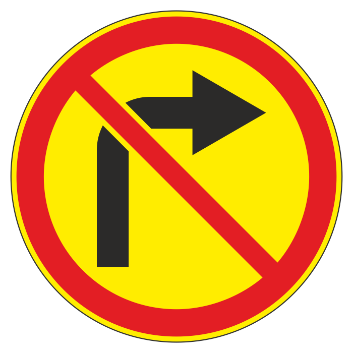 Дорожный знак 3.18.1 «Поворот направо запрещен» (временный) (металл 0,8 мм, II типоразмер: диаметр 700 мм, С/О пленка: тип Б высокоинтенсивная) в Новом Уренгое купить