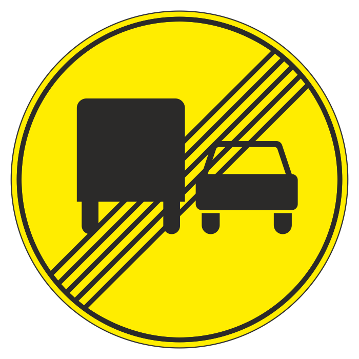 Дорожный знак 3.23 «Конец зоны запрещения обгона грузовым автомобилям» (временный) (металл 0,8 мм, II типоразмер: диаметр 700 мм, С/О пленка: тип А коммерческая) в Новом Уренгое купить