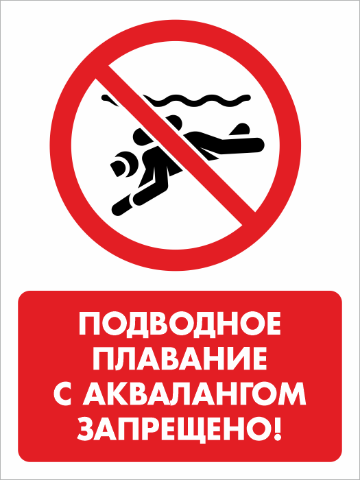 Знак «Подводное плавание с аквалангом запрещено!», БВ-38 как уже видно из названия, запрещает плавание с аквалангом