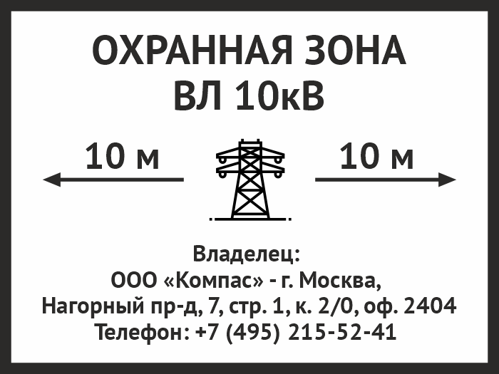 Знак «Охранная зона ВЛ 10 кВ (высоковольтной линии)», OZK-07 (пластик 2 мм, 400х300 мм) в Новом Уренгое купить
