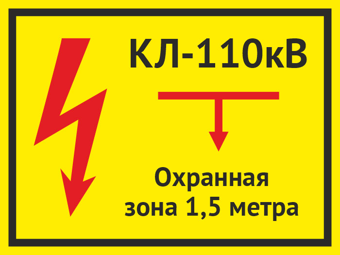 Табличка «КЛ 110 кВ, охранная зона 1.5 метра», OZK-08 (пластик 2 мм, 400х300 мм) в Новом Уренгое купить