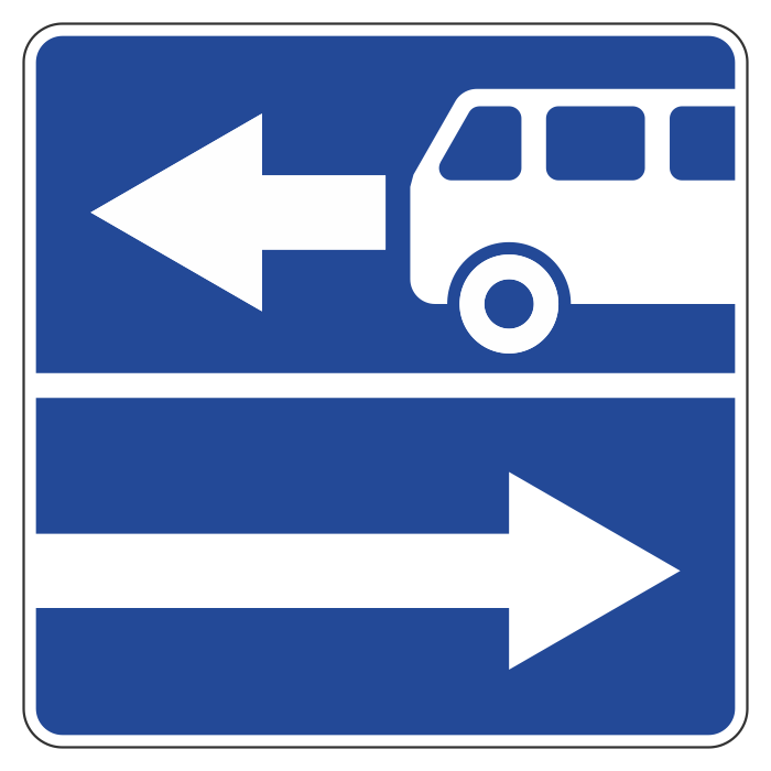 Дорожный знак 5.13.1 «Выезд на дорогу с полосой для маршрутных транспортных средств» (металл 0,8 мм, II типоразмер: сторона 700 мм, С/О пленка: тип В алмазная) в Новом Уренгое купить