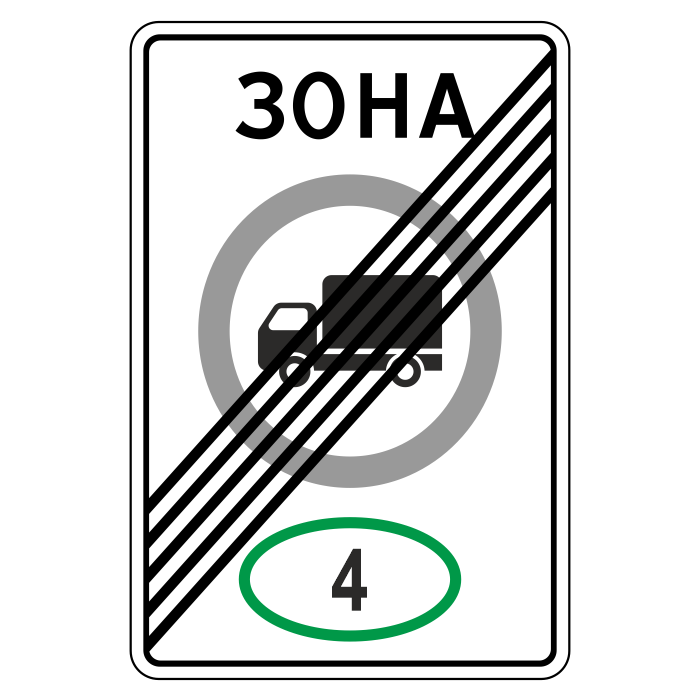 Дорожный знак 5.37 «Конец зоны с ограничением экологического класса грузовых автомобилей» (металл 0,8 мм, I типоразмер: 900х600 мм, С/О пленка: тип А инженерная) в Новом Уренгое купить