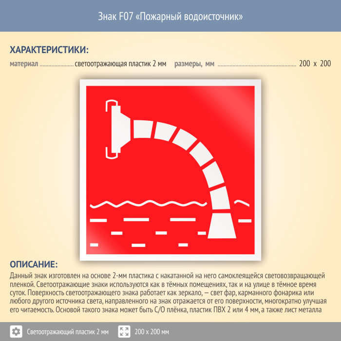 Знак F07 «Пожарный водоисточник» (светоотражающий пластик, 200х200 мм) в Новом Уренгое купить