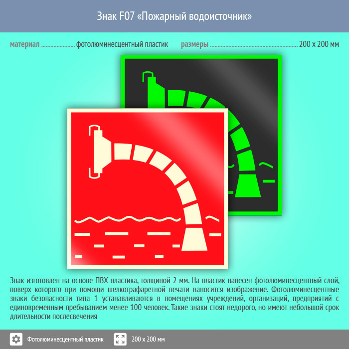 Знак F07 «Пожарный водоисточник» (фотолюминесцентный пластик, 200х200 мм) в Новом Уренгое купить