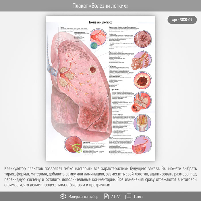 Плакат «Болезни легких» (ЗОЖ-09, 1 лист) в Новом Уренгое купить