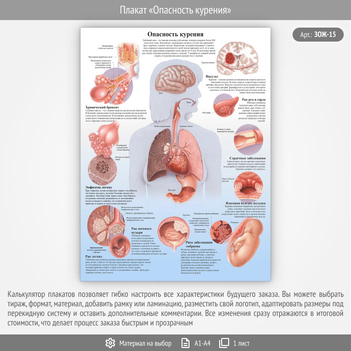 Плакат «Опасность курения» (ЗОЖ-15, 1 лист) в Новом Уренгое купить