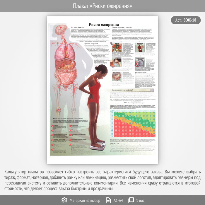 Плакат «Риски ожирения» (ЗОЖ-18, 1 лист) в Новом Уренгое купить