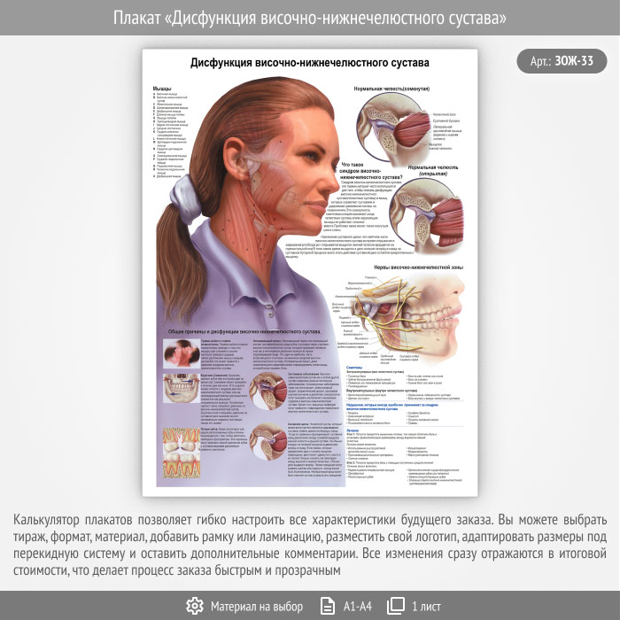 Плакат «Дисфункция височно-нижнечелюстного сустава» (ЗОЖ-33, 1 лист) в Новом Уренгое купить