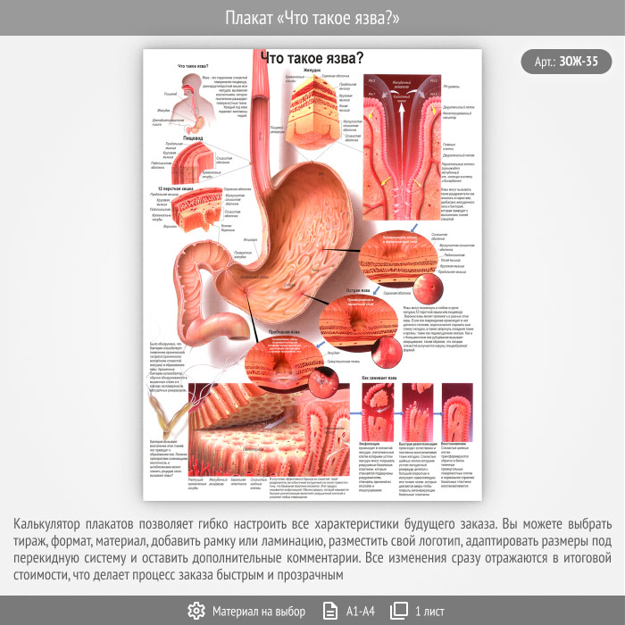 Плакат «Что такое язва?» (ЗОЖ-35, 1 лист) в Новом Уренгое купить