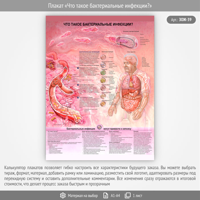 Плакат «Что такое бактериальные инфекции?» (ЗОЖ-39, 1 лист) в Новом Уренгое купить