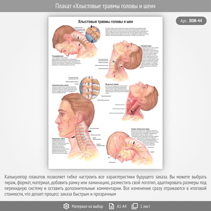 Плакат «Хлыстовые травмы головы и шеи» (ЗОЖ-44, 1 лист) в Новом Уренгое купить